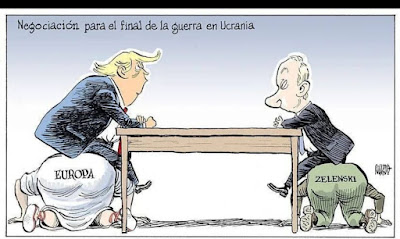 2/ a segunda é que a carcomida Europa não passa de um desdentado cão que mais ladra enquanto a caravana passa, e, portanto, sem poder real e o que oferecer de concreto numa negociação que busca resultados palpáveis num conflito em que participa como mero coadjuvante dos EUA (e em certo grau do Reino Unido);